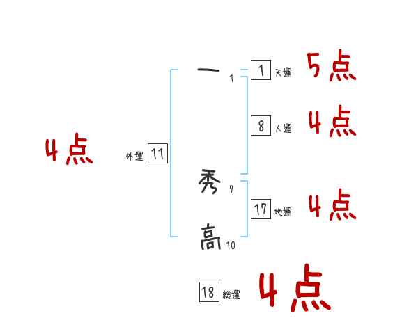 一秀高さんの画数の鑑定結果