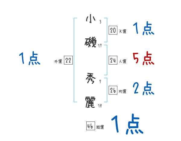 小磯秀麗さんの画数の鑑定結果