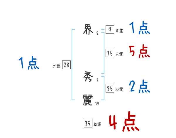 界秀麗さんの画数の鑑定結果