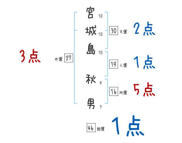 宮城島秋男さんの画数の鑑定結果