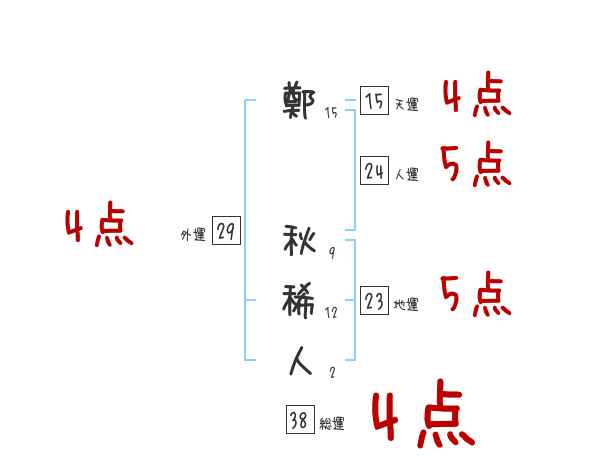 鄭秋稀人さんの画数の鑑定結果