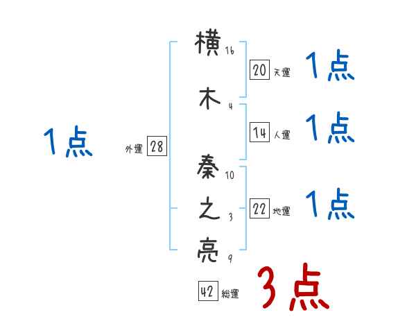 外運![]() | 横木秦之亮さんの外運は28画の1つ星!家庭環境に注意。スポーツで活躍できる能力があるかも。 生活面を象徴する運勢です。外部から受ける影響力を表し、結婚運、家庭運や職場、環境への順応性を表します。 |