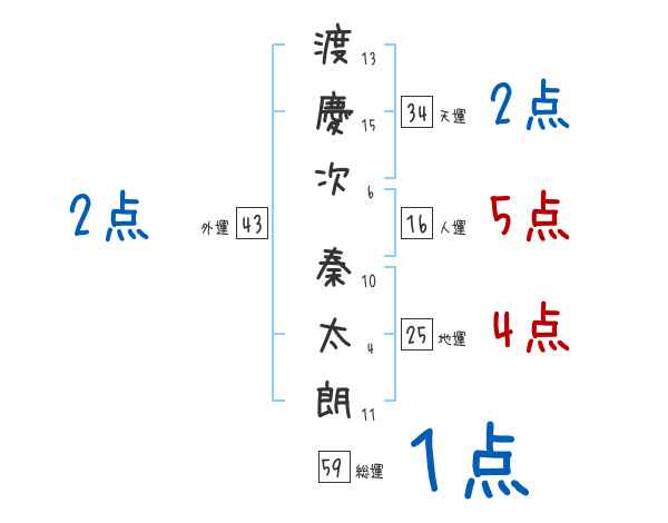 天運![]() | 渡慶次秦太朗さんの天運は34画の2つ星!独創性に優れるが、自尊心が強く災難に注意しましょう。 家系が持つ宿命的な運勢を表します。祖先から受け継いだ苗字ですので自分の力が及びません。家柄を象徴します。 |