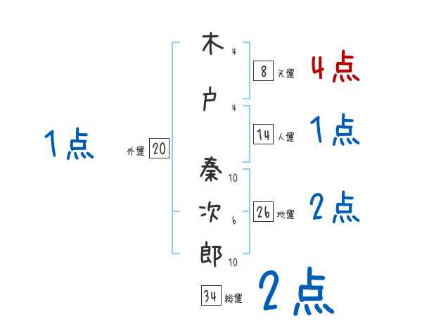 家系が持つ宿命的な運勢を表します。祖先から受け継いだ苗字ですので自分の力が及びません。家柄を象徴します。