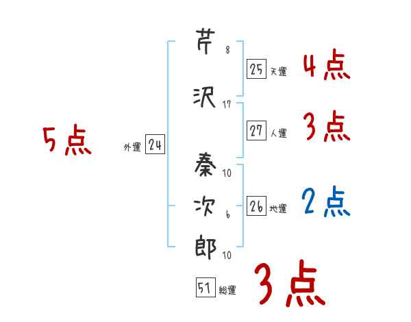 芹沢秦次郎さんの画数の鑑定結果