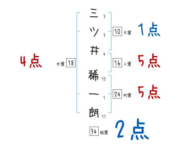 三ツ井稀一朗さんの画数の鑑定結果