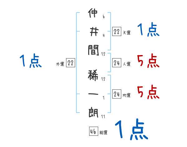 仲井間稀一朗さんの画数の鑑定結果