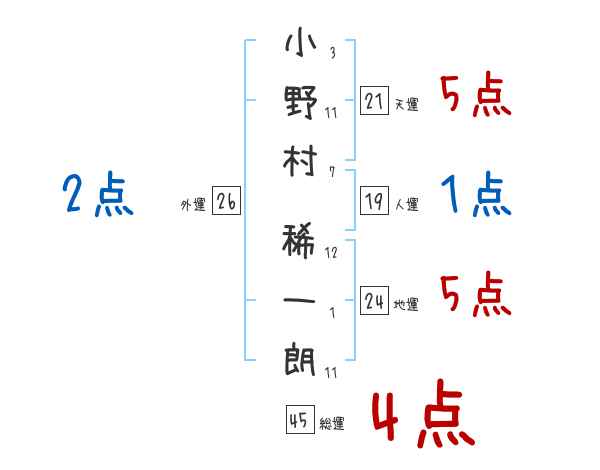 小野村稀一朗さんの画数の鑑定結果