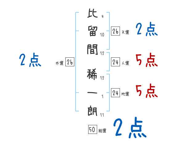 比留間稀一朗さんの画数の鑑定結果