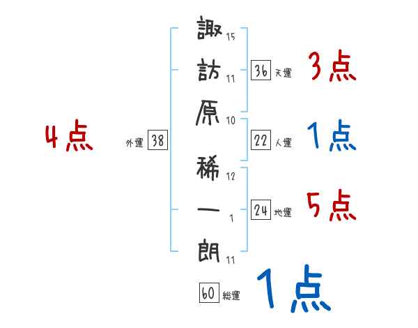 諏訪原稀一朗さんの画数の鑑定結果