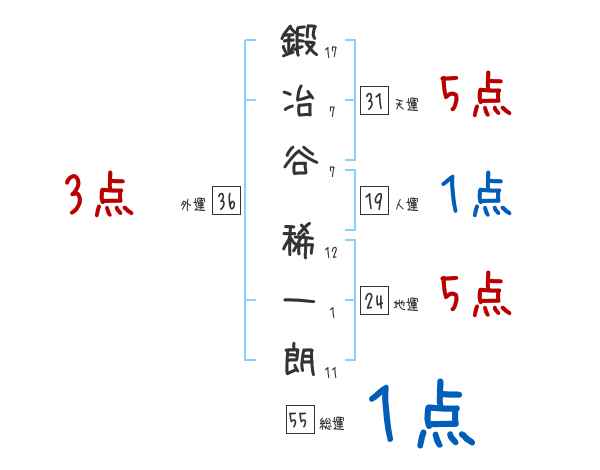鍛冶谷稀一朗さんの画数の鑑定結果