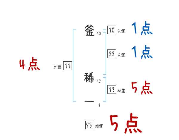 釜稀一さんの画数の鑑定結果