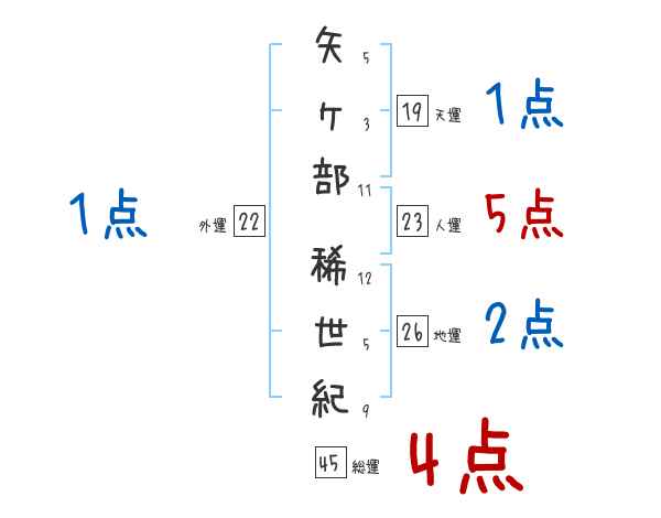 矢ヶ部稀世紀さんの画数の鑑定結果