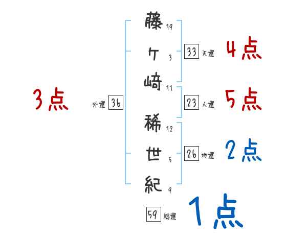 藤ヶ﨑稀世紀さんの画数の鑑定結果
