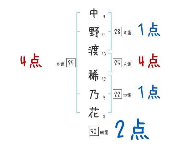 中野渡稀乃花さんの画数の鑑定結果