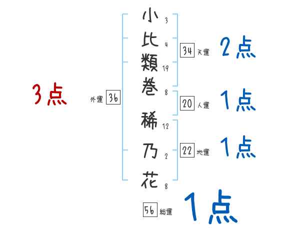 地運![]() | 小比類巻稀乃花さんの地運は22画の1つ星!努力することが苦手ないっぽう手先が器用。芸術性にも優れる。 個性を表す基礎的な運勢です。性格形成や対人関係、行動力など家庭環境に影響されます。主に誕生してから20歳くらいまでの若年期の運勢を表します。 |