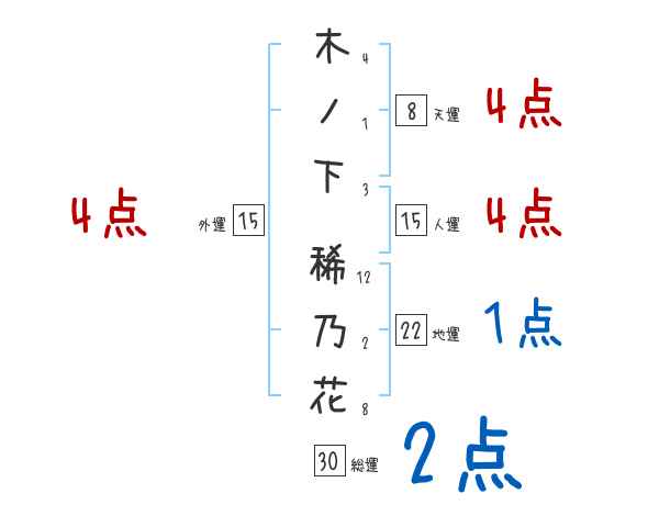 外運![]() | 木ノ下稀乃花さんの外運は15画の4つ星!人徳があり出世する。順調に物事を進め円満な人生。 生活面を象徴する運勢です。外部から受ける影響力を表し、結婚運、家庭運や職場、環境への順応性を表します。 |