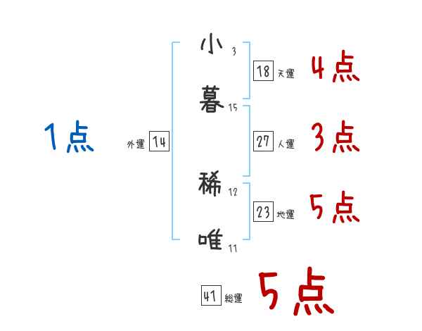 小暮稀唯さんの画数の鑑定結果