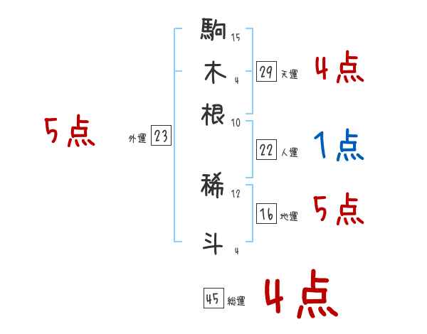 駒木根稀斗さんの画数の鑑定結果