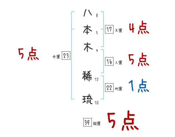 八本木稀琉さんの画数の鑑定結果