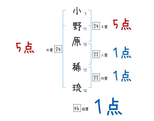 小野原稀琉さんの画数の鑑定結果