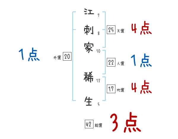 江刺家稀生さんの画数の鑑定結果