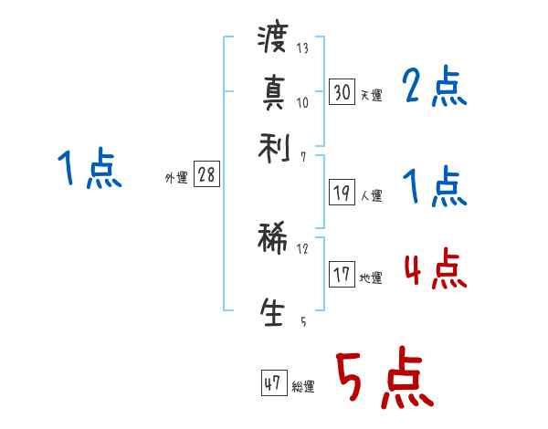 渡真利稀生さんの画数の鑑定結果