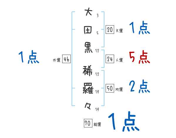 天運![]() | 大田黒稀羅々さんの天運は20画の1つ星!社交が苦手。人とは違った才能があり波乱万丈な人生かも。 家系が持つ宿命的な運勢を表します。祖先から受け継いだ苗字ですので自分の力が及びません。家柄を象徴します。 |