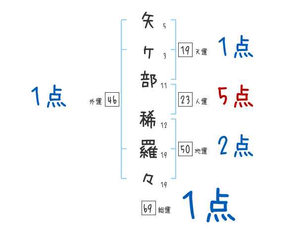矢ヶ部稀羅々さんの画数の鑑定結果