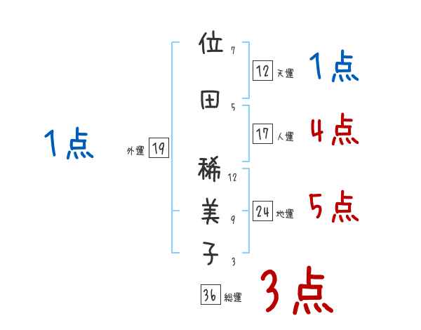 総運![]() | 位田稀美子さんの総運は36画の3つ星!先見性が豊かです。多少神経質で苦労することも。 あなたの人生を表す1番重要な運勢です。生涯を通じて影響する総合運となり、主に50歳以降の晩年期に影響を及ぼします。 |