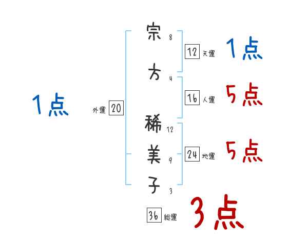 総運![]() | 宗方稀美子さんの総運は36画の3つ星!先見性が豊かです。多少神経質で苦労することも。 あなたの人生を表す1番重要な運勢です。生涯を通じて影響する総合運となり、主に50歳以降の晩年期に影響を及ぼします。 |