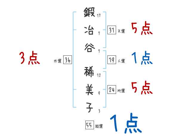 鍛冶谷稀美子さんの総運は55画の1つ星