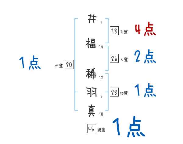井福稀羽真さんの画数の鑑定結果