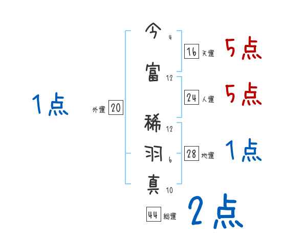 今富稀羽真さんの画数の鑑定結果