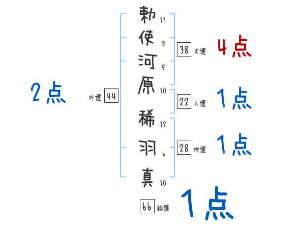 勅使河原稀羽真さんの画数の鑑定結果