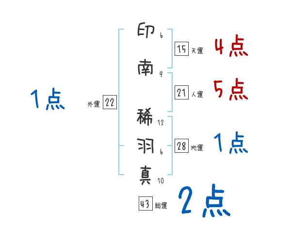人運![]() | 印南稀羽真さんの人運は21画の5つ星!統率力がある。独立し成功する。名誉を手に入れる。 性格や才能などを表す2番目に重要な運勢です。人間関係や協調性、社会的な成功に影響します。主に20歳から50歳ぐらいまでの中年期の運勢を表します。 |