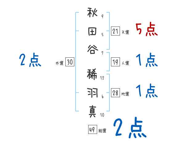 秋田谷稀羽真さんの画数の鑑定結果