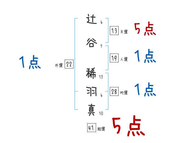 総運![]() | 辻谷稀羽真さんの総運は41画の5つ星!大志を抱き、目標に向かって実力を発揮し達成する。温和な性格。 あなたの人生を表す1番重要な運勢です。生涯を通じて影響する総合運となり、主に50歳以降の晩年期に影響を及ぼします。 |