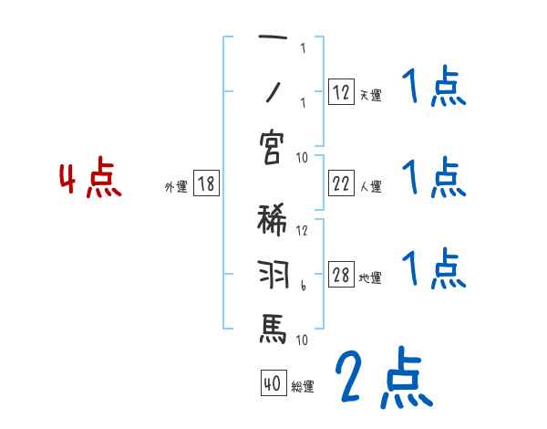 一ノ宮稀羽馬さんの画数の鑑定結果