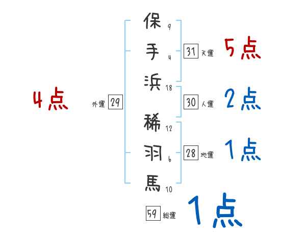 天運![]() | 保手浜稀羽馬さんの天運は31画の5つ星!社交性があり判断力に優れる。順風満帆な人生で円満な生活。 家系が持つ宿命的な運勢を表します。祖先から受け継いだ苗字ですので自分の力が及びません。家柄を象徴します。 |