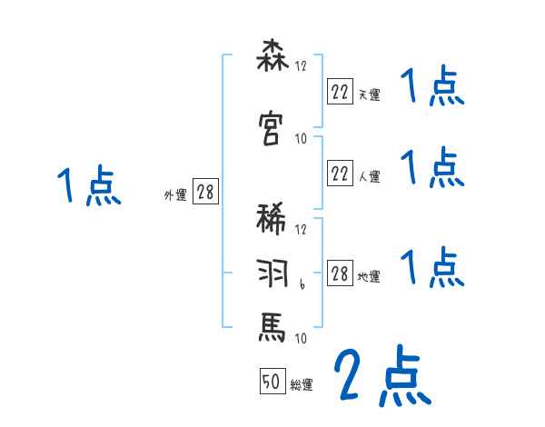 森宮稀羽馬さんの画数の鑑定結果