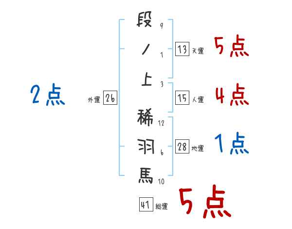 段ノ上稀羽馬さんの画数の鑑定結果
