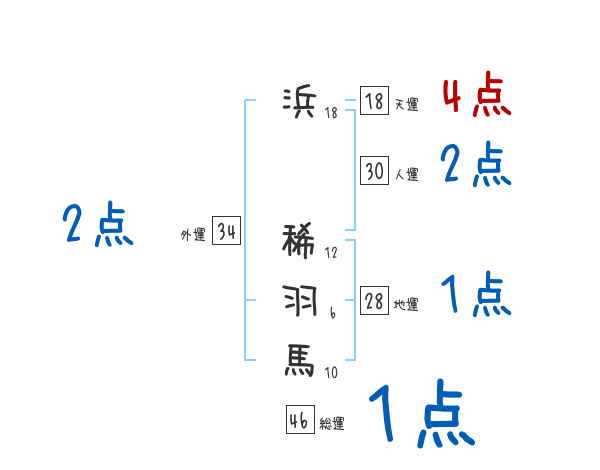 浜稀羽馬さんの画数の鑑定結果