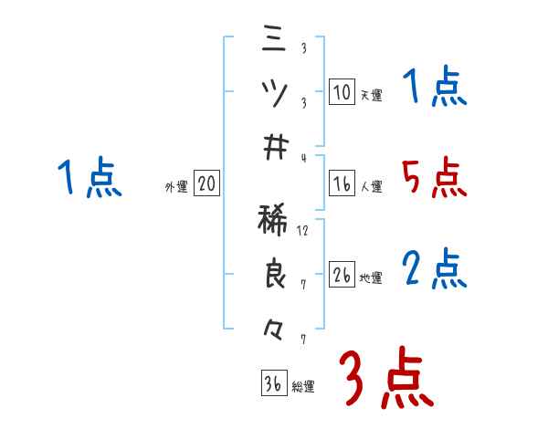 三ツ井稀良々さんの画数の鑑定結果