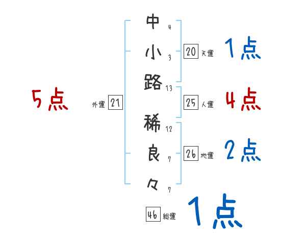 外運![]() | 中小路稀良々さんの外運は21画の5つ星!統率力がある。独立し成功する。名誉を手に入れる。 生活面を象徴する運勢です。外部から受ける影響力を表し、結婚運、家庭運や職場、環境への順応性を表します。 |