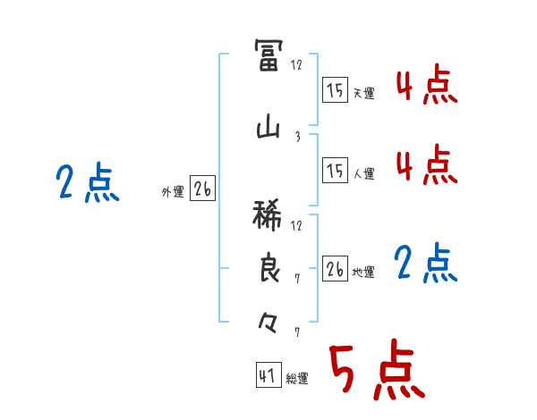 外運![]() | 冨山稀良々さんの外運は26画の2つ星!波瀾万丈かも。信頼できる人を大事にしましょう。 生活面を象徴する運勢です。外部から受ける影響力を表し、結婚運、家庭運や職場、環境への順応性を表します。 |