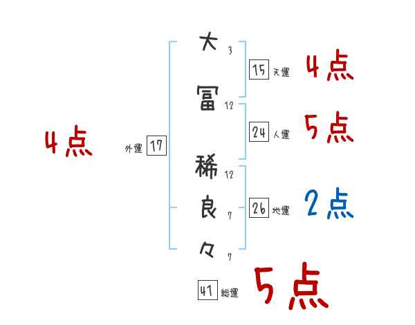 大冨稀良々さんの画数の鑑定結果
