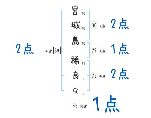 宮城島稀良々さんの画数の鑑定結果