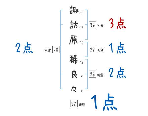 諏訪原稀良々さんの画数の鑑定結果
