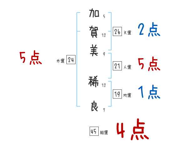 加賀美稀良さんの画数の鑑定結果